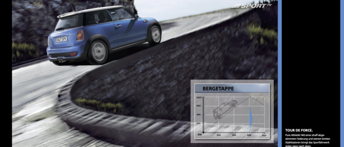 Während meiner Tätigkeit für MINI war ich für die Internationalisierung des Verkaufskatalogs und der POS-Materialien zur Markteinführung des MINI durch die BMW Group verantwortlich. Zudem betreute ich später die Erstellung des deutschen Masterkatalogs