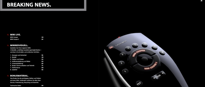 Im weiteren ging es dann um die Neugestaltung der deutschen Mastervariante, so dass der Katalog der Marke MINI entsprechend neu, modern und spielerisch war.